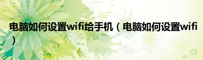 电脑如何设置wifi给手机(电脑如何设置wifi)