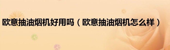 导读 大家好,麟非来为大家解答以上问题,欧意抽油烟机好用吗,欧意抽油烟机怎么样很多人还不知道,现在让我们一起来看看吧!1、欧意油烟机的品