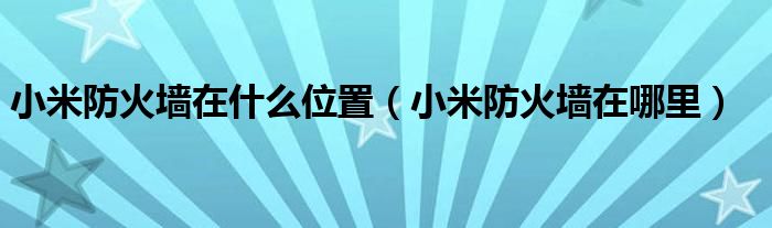 大家好,麟非来为大家解答以上问题,小米防火墙在什么位置,小米防火墙在哪里很多人还不知道,现在让我们一起来看看吧!