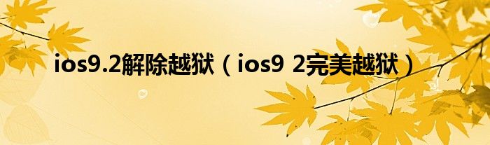 大家好,麟非来为大家解答以上问题,ios9.2解除越狱,ios9 2完美越狱很多人还不知道,现在让我们一起来看看吧!