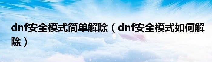 dnf安全模式简单解除(dnf安全模式如何解除)