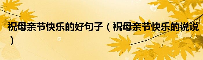 祝母亲节快乐的好句子(祝母亲节快乐的说说)