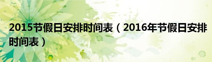 大家好,麟非来为大家解答以上问题,2015节假日安排时间表,2016年节假日安排时间表很多人还不知道,现在让我们一起来看看吧!