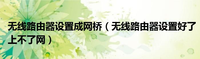 无线路由器设置成网桥(无线路由器设置好了上不了网)
