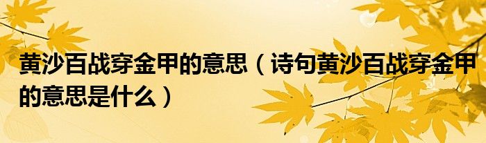 黄沙百战穿金甲的意思(诗句黄沙百战穿金甲的意思是什么)