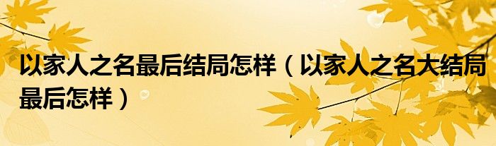 以家人之名最后结局怎样(以家人之名大结局最后怎样)