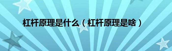 杠杆原理是什么(杠杆原理是啥)