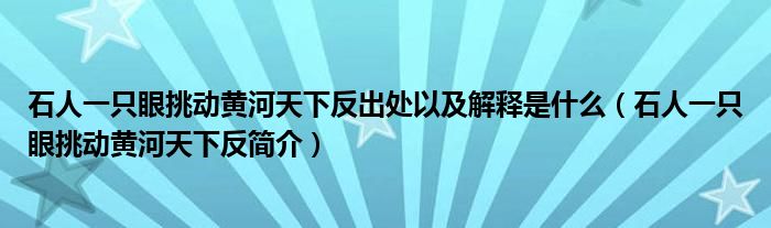 导读 大家好,阿郎来为大家解答以上问题。石人一只眼挑动黄河天下反出处以及解释是什么,石人一只眼挑动黄河天下反简介很多人还不知道,现在让我