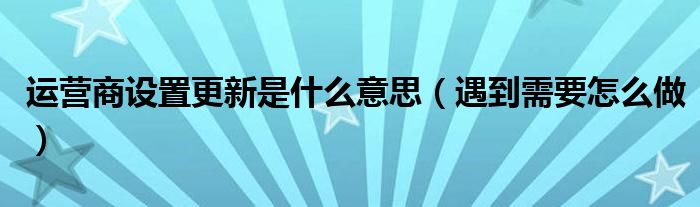 导读 大家好,阿郎来为大家解答以上问题。运营商设置更新是什么意思,遇到需要怎么做很多人还不知道,现在让我们一起来看看吧!