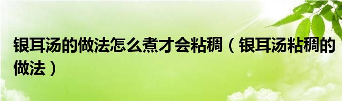 银耳汤的做法怎么煮才会粘稠(银耳汤粘稠的做法)