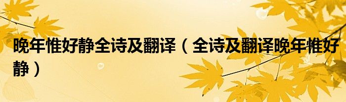 导读 大家好,阿郎来为大家解答以上问题。晚年惟好静全诗及翻译,全诗及翻译晚年惟好静很多人还不知道,现在让我们一起来看看吧!