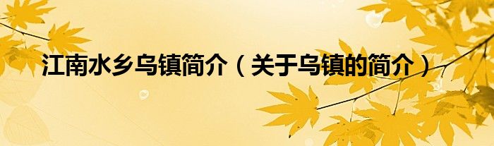 大家好,阿郎来为大家解答以上问题。江南水乡乌镇简介,关于乌镇的简介很多人还不知道,现在让我们一起来看看吧!