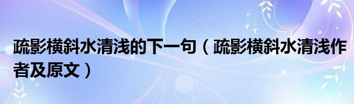 导读 大家好,阿郎来为大家解答以上问题。疏影横斜水清浅的下一句,疏影横斜水清浅作者及原文很多人还不知道,现在让我们一起来看看吧!