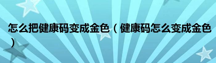 怎么把健康码变成金色(健康码怎么变成金色)