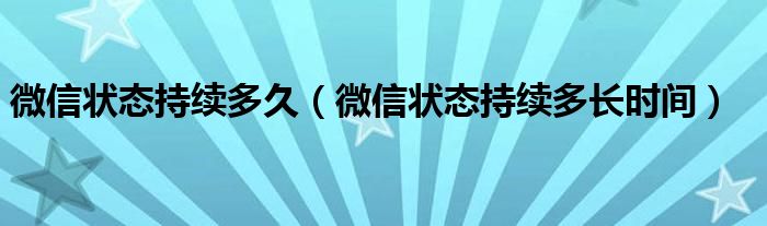 大家好,阿郎来为大家解答以上问题。微信状态持续多久,微信状态持续多长时间很多人还不知道,现在让我们一起来看看吧!
