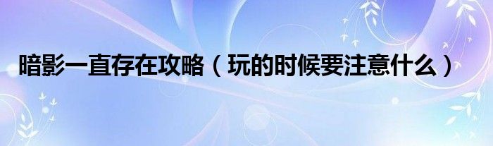 导读 大家好,阿郎来为大家解答以上问题。暗影一直存在攻略,玩的时候要注意什么很多人还不知道,现在让我们一起来看看吧!