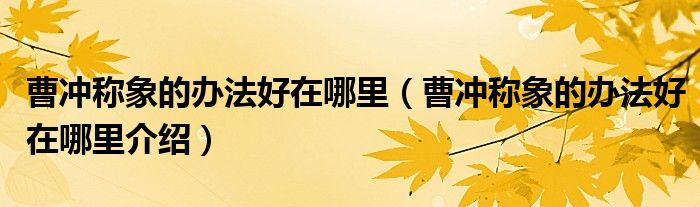 曹冲称象的办法好在哪里(曹冲称象的办法好在哪里介绍)