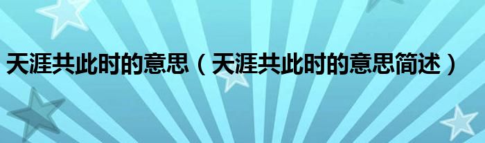 大家好,阿郎来为大家解答以上问题。天涯共此时的意思,天涯共此时的意思简述很多人还不知道,现在让我们一起来看看吧!