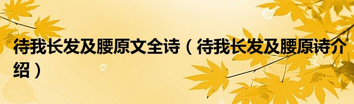 导读 大家好,阿郎来为大家解答以上问题。待我长发及腰原文全诗,待我长发及腰原诗介绍很多人还不知道,现在让我们一起来看看吧!