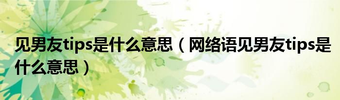 导读 大家好,阿郎来为大家解答以上问题。见男友tips是什么意思,网络语见男友tips是什么意思很多人还不知道,现在让我们一起来看看吧!