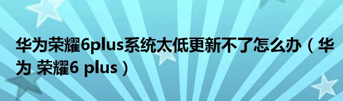 华为荣耀6plus系统太低更新不了怎么办(华为 荣耀6 plus)