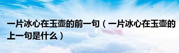 导读 大家好,阿郎来为大家解答以上问题。一片冰心在玉壶的前一句,一片冰心在玉壶的上一句是什么很多人还不知道,现在让我们一起来看看吧!