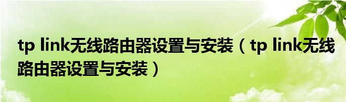 tp link无线路由器设置与安装(tp link无线路由器设置与安装)