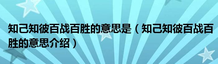 知己知彼百战百胜的意思是(知己知彼百战百胜的意思介绍)