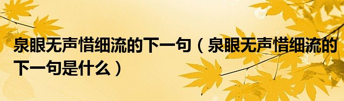 泉眼无声惜细流的下一句(泉眼无声惜细流的下一句是什么)