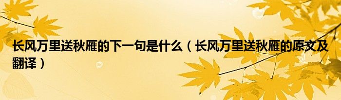 导读 大家好,阿郎来为大家解答以上问题。长风万里送秋雁的下一句是什么,长风万里送秋雁的原文及翻译很多人还不知道,现在让我们一起来看看吧!