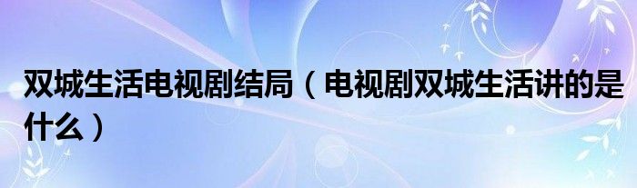 导读 大家好,阿郎来为大家解答以上问题。双城生活电视剧结局,电视剧双城生活讲的是什么很多人还不知道,现在让我们一起来看看吧!