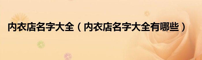 导读 大家好,阿郎来为大家解答以上问题。内衣店名字大全,内衣店名字大全有哪些很多人还不知道,现在让我们一起来看看吧!