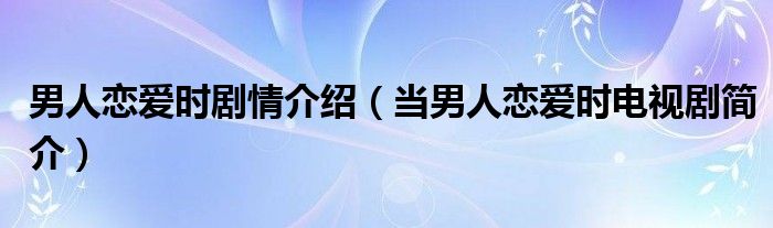 导读 大家好,阿郎来为大家解答以上问题。男人恋爱时剧情介绍,当男人恋爱时电视剧简介很多人还不知道,现在让我们一起来看看吧!