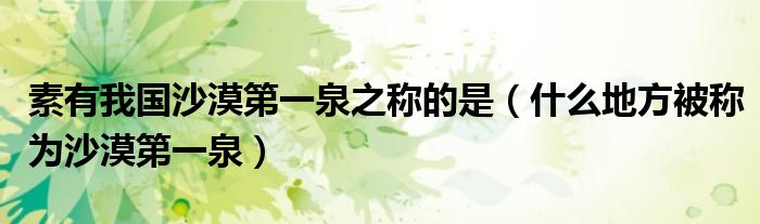 导读 大家好,阿郎来为大家解答以上问题。素有我国沙漠第一泉之称的是,什么地方被称为沙漠第一泉很多人还不知道,现在让我们一起来看看吧!