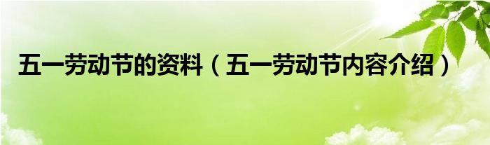大家好,阿郎来为大家解答以上问题。五一劳动节的资料,五一劳动节内容介绍很多人还不知道,现在让我们一起来看看吧!