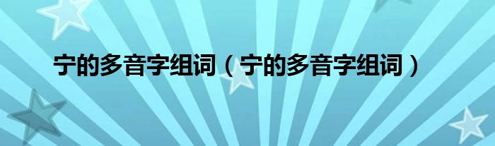 大家好,阿郎来为大家解答以上问题。宁的多音字组词,宁的多音字组词很多人还不知道,现在让我们一起来看看吧!