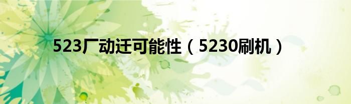大家好,麟非来为大家解答以上问题,523厂动迁可能性,5230刷机很多人还不知道,现在让我们一起来看看吧!