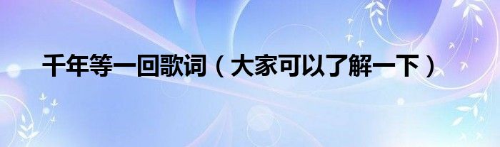 千年等一回歌词(大家可以了解一下)