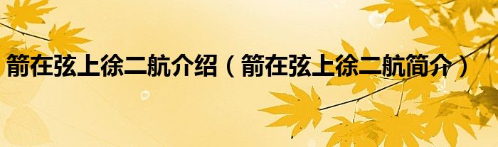 箭在弦上徐二航介绍(箭在弦上徐二航简介)