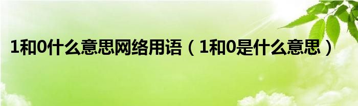 导读 大家好,阿郎来为大家解答以上问题。1和0什么意思网络用语,1和0是什么意思很多人还不知道,现在让我们一起来看看吧!