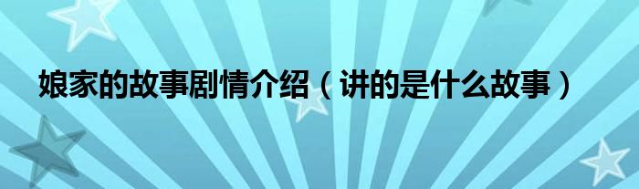 导读 大家好,阿郎来为大家解答以上问题。娘家的故事剧情介绍,讲的是什么故事很多人还不知道,现在让我们一起来看看吧!