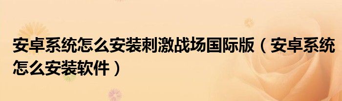 安卓系统怎么安装刺激战场国际版(安卓系统怎么安装软件)