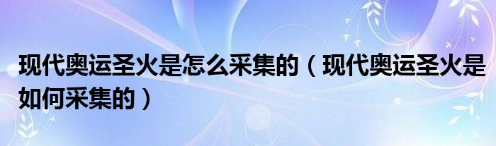现代奥运圣火是怎么采集的(现代奥运圣火是如何采集的)
