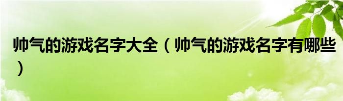 帅气的游戏名字大全(帅气的游戏名字有哪些)