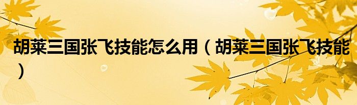胡莱三国张飞技能怎么用(胡莱三国张飞技能)