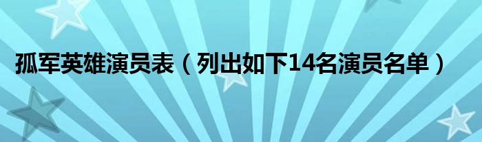 导读 大家好,阿郎来为大家解答以上问题。孤军英雄演员表,列出如下14名演员名单很多人还不知道,现在让我们一起来看看吧!