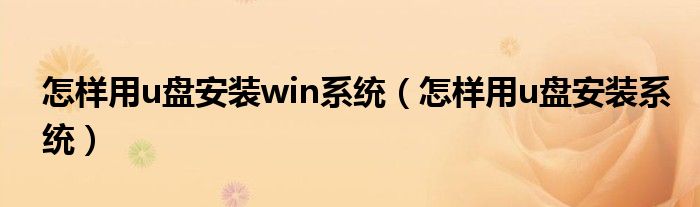 怎样用u盘安装win系统(怎样用u盘安装系统)
