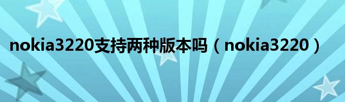 大家好,麟非来为大家解答以上问题,nokia3220支持两种版本吗,nokia3220很多人还不知道,现在让我们一起来看看吧!
