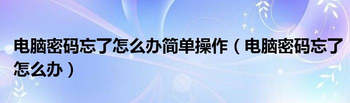 电脑密码忘了怎么办简单操作(电脑密码忘了怎么办)