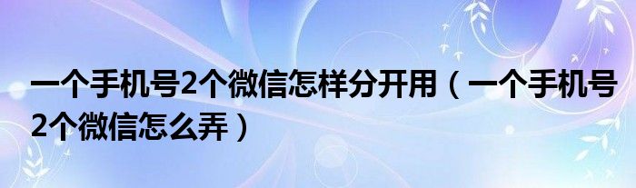 一个手机号2个微信怎样分开用(一个手机号2个微信怎么弄)